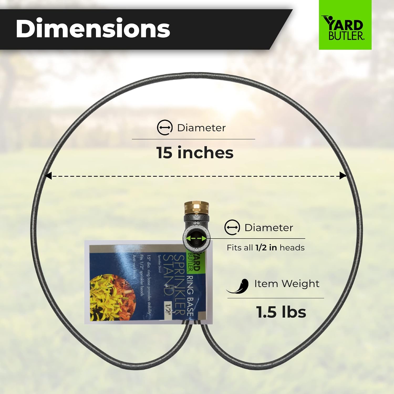 Yard Butler Ring Base Sprinkler Stand - Durable Gardening Supplies for Lawn Care - Sturdy Design for Sprinkler Stability - Water Lawn & Garden Evenly - 1/2" Head