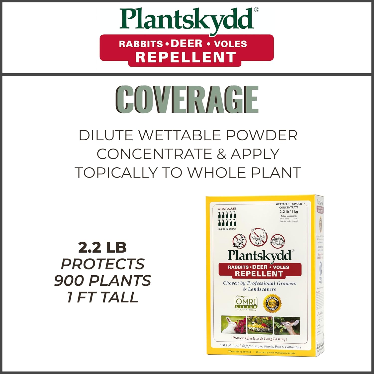 Plantskydd Animal Repellent - Repels Deer, Rabbits, Elk, Moose, Hares, Voles, Squirrels, Chipmunks and Other Herbivores; Wettable Powder Concentrate - 2.2 LB Box - Makes 2.5 Gallon Liquid (PSP-R2)