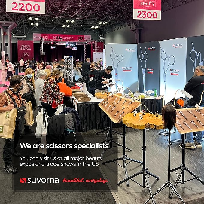 - ๐ฉ๐ปโ๐ผ AMERICAN FEMALE-OWNED BRAND: Suvorna is an American female-owned brand. Unlike other brands sourcing from China, each pair is hand-finished in our manufacturing units. Skilled artisans mold the finest Japanese stainless steel into a sleek, ergonomic design. Each hair scissor is then hand-polished for a touch of luxury, Every pair undergoes strenuous quality assurance tests to give the confidence to offer a lifetime warranty against any manufacturing defects.