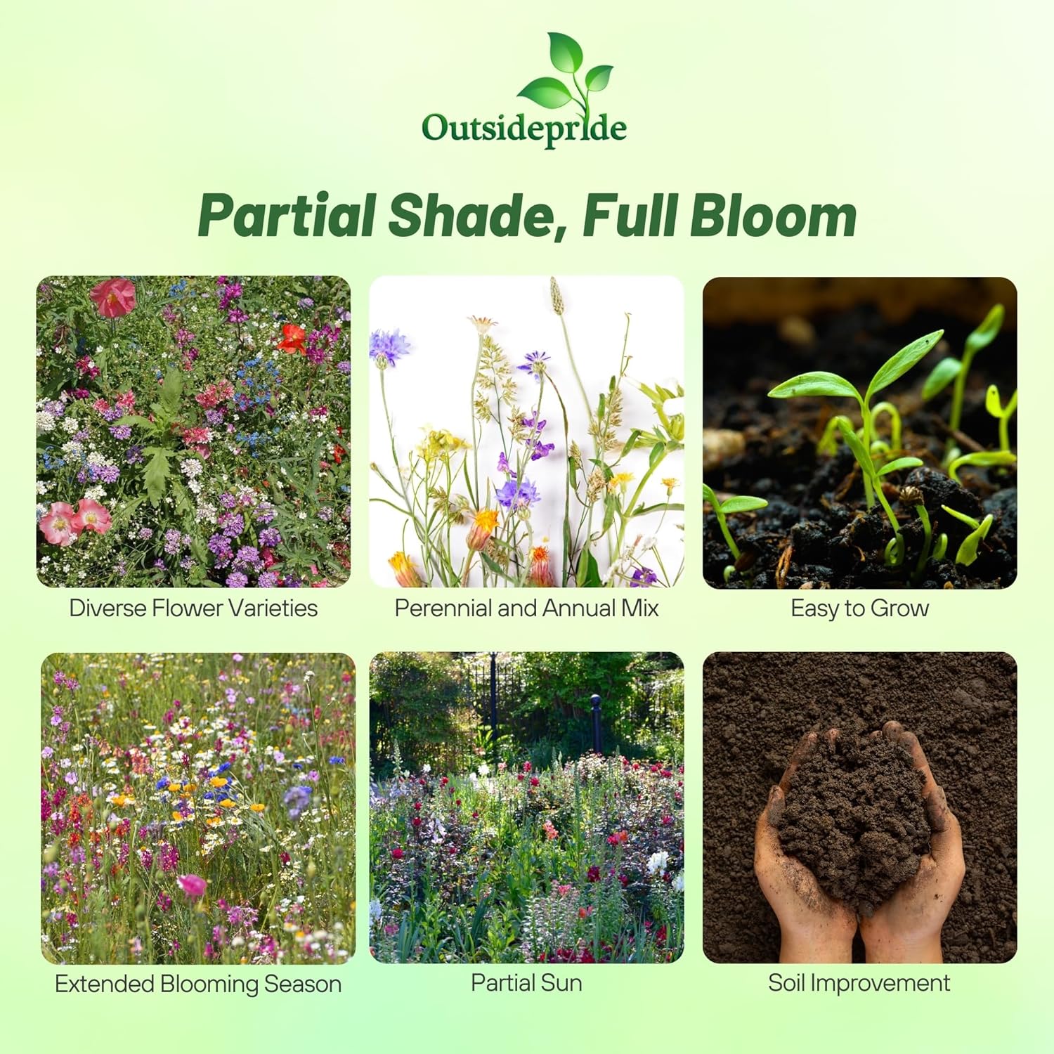 • PERFECT FOR PARTIAL SHADE GARDENS: Specially formulated for partial areas with around 40% sunlight, this shade wildflower seeds includes both annuals and perennials, perfect for spring planting in gardens or lawns across all states. Designed to grow in outdoor, shaded conditions, it ensures continuous flowering, making it an ideal choice for planting where many other plants struggle to thrive.