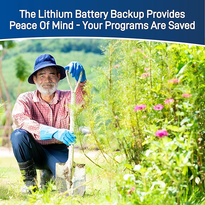 • INDOOR AND OUTDOOR INSTALLATION - Engineered with a locking cabinet with two keys for both indoor and outdoor installation, our timer offers versatility and convenience for your sprinkler system.