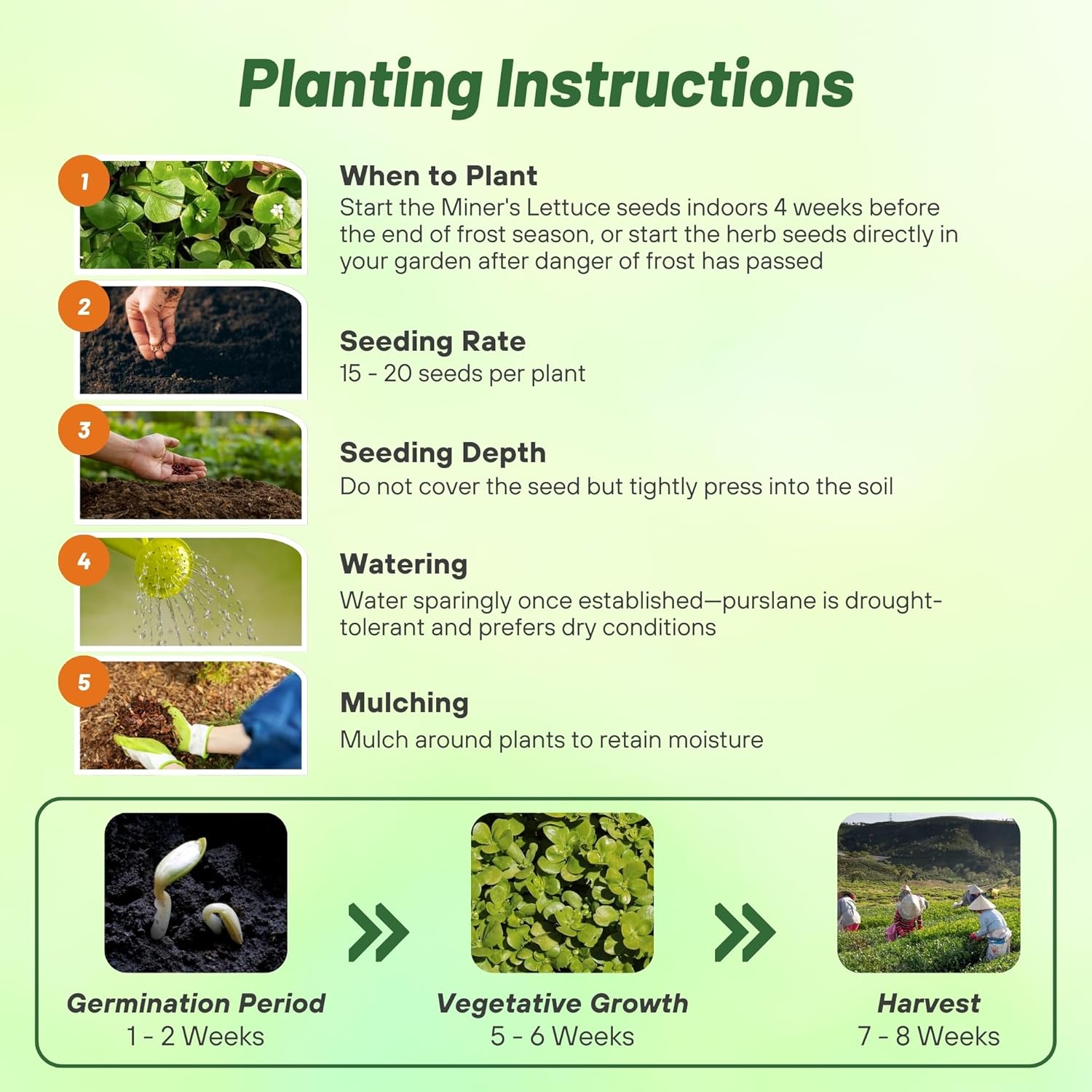 • ORNAMENTAL & EDIBLE: Our Winter Purslane seeds grow 10 - 20 inches tall in USDA Zones 5 - 9, developing in garden beds, borders, and containers. With succulent leaves and delicate white flowers blooming from mid spring to mid summer, it attracts pollinators. This dual-purpose plant provides both ornamental beauty and edible greens, offering benefits for your garden.
