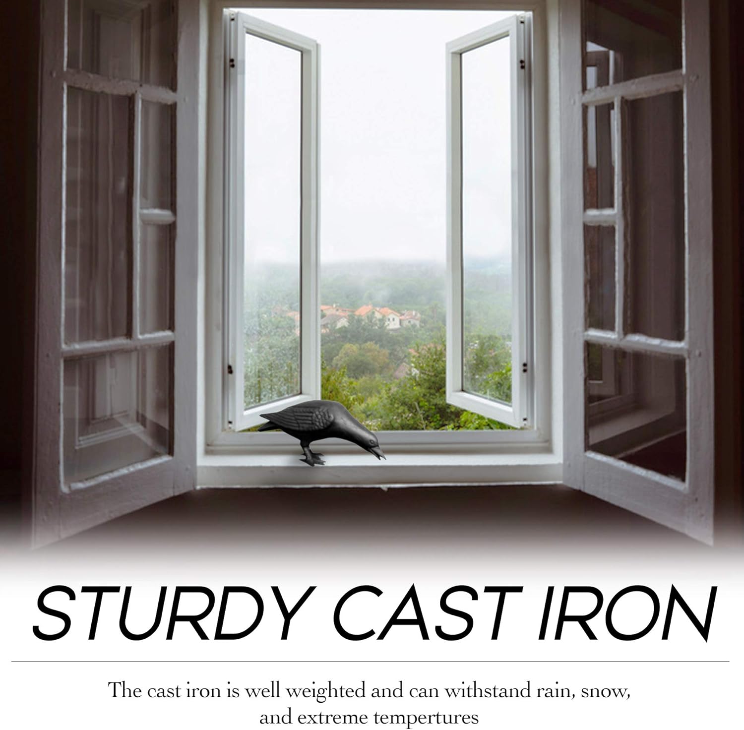 • Sturdy Metal Garden Art – Unlike the real thing, this crow statue will not fly away! The cast iron is well weighted to keep these garden statues where you place them. Rain, snow, and even moderate wind will not disturb these outdoor statues.