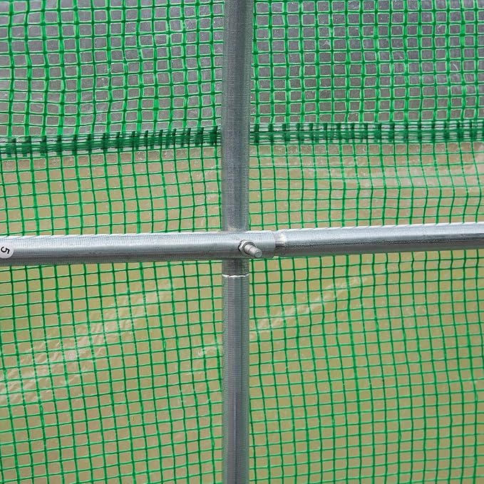 • Plastic Cover: Our two-layer 140 GSM PE cover features a reinforcement grid to prevent tearing. It protects plants from UV scorching while allowing 85% of nourishing sunlight to pass through. The winter greenhouse cover attaches via tethers and tape. Please bury the extended edges after installation.