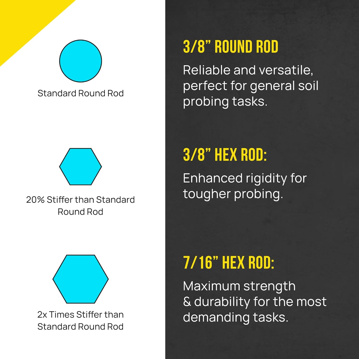 • RUGGED STEEL CONSTRUCTION: Crafted from heavy-duty steel, this Mighty Probe is engineered for demanding tasks like soil testing, locating underground pipes, and finding septic tanks. The 3/8" round steel rod resists bending, ensuring consistent performance in tough soil and frozen ground.