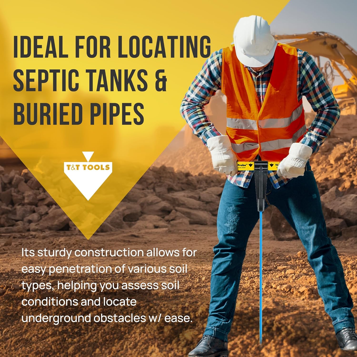 • VERSATILE MULTI-PURPOSE TOOL: Ideal for a range of outdoor applications, the T&T Tools Mighty Probe excels in locating septic tanks, underground pipes, and buried utility lines. Its versatile design makes it a must-have for landscaping, utility locating, and other outdoor projects.