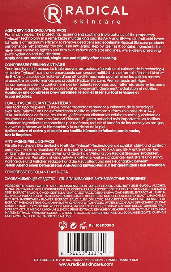 Radical Skincare Age Defying Exfoliating Pads Removes Dead Skin, Evens and Brightens Skin Tone for Radiant Glow | For All Skin Types Including Sensitive Skin | Paraben & Cruelty Free (15 Pads)