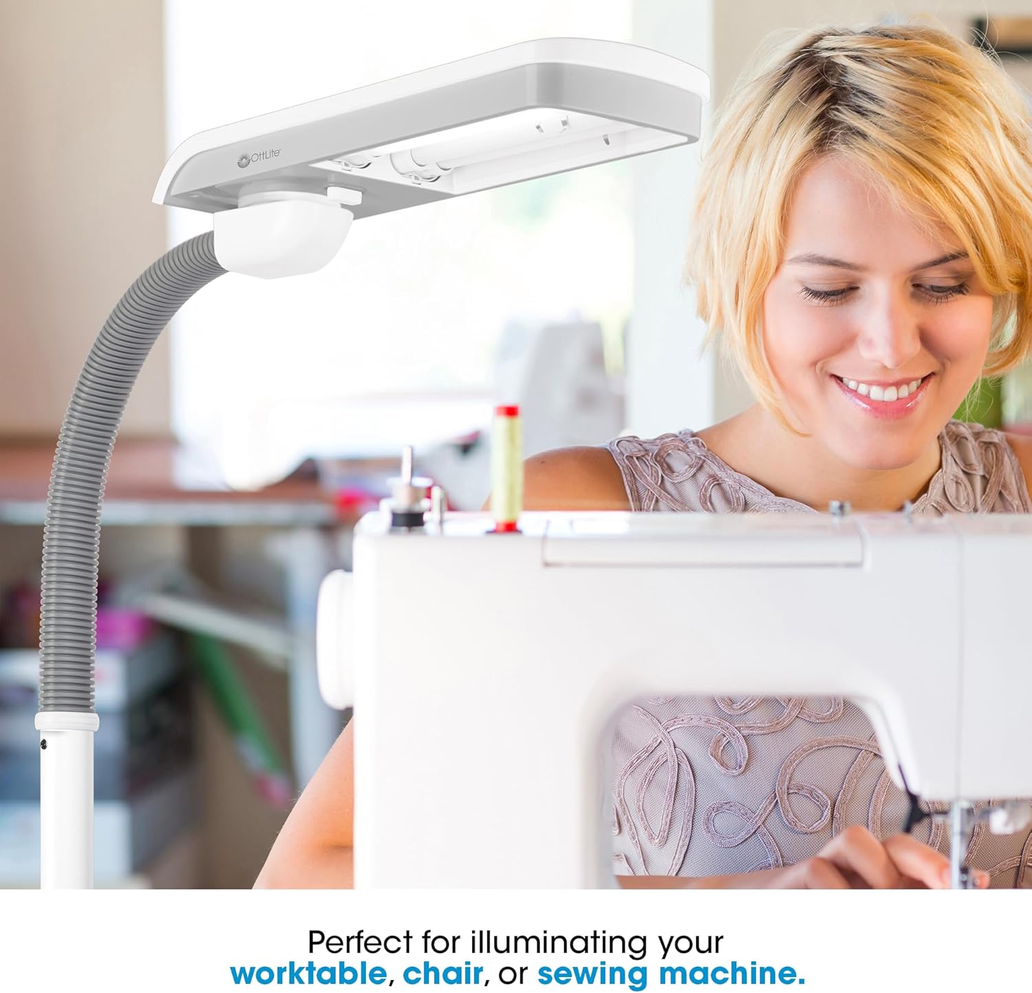 • A Smart Addition to Any Craft Room: OttLite’s most powerful modern floor lamp for bedroom and more features a 90-degree pivoting shade in a large, 6x6” size for expansive illumination. The flexible goose neck floor lamp and arc floor lamp have two brightness settings provide a wide range of lighting options to suit your workspace.