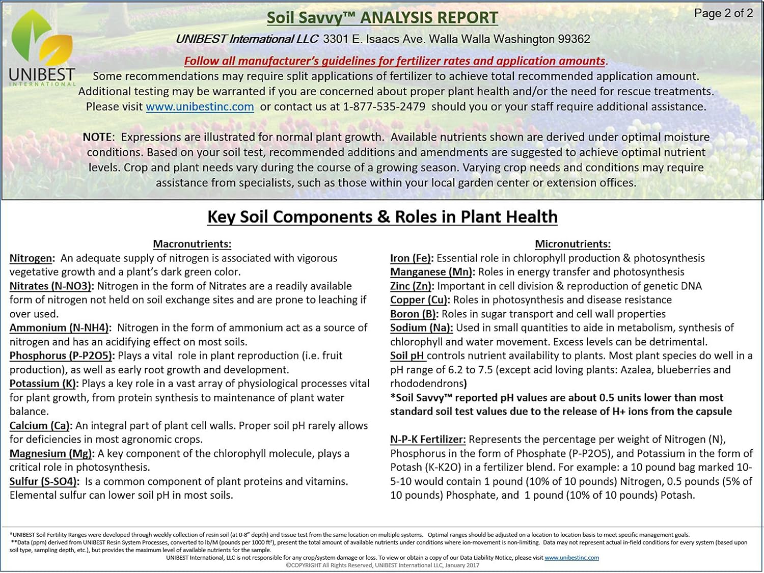 • Analysis provides a full report, comprised of soil pH and 14 nutrients including (N,P,K)