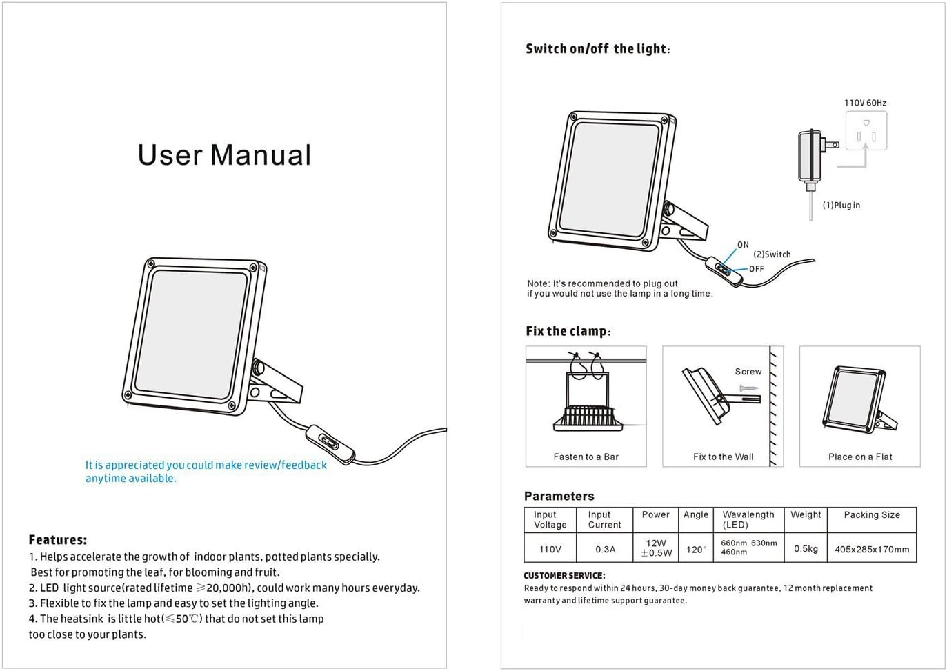 • FULL SPECTRUM LED GROW LIGHTS--Red 630nm and 660nm, Blue:460nm and White light 2700K. - Suitable for all stages of growth,Specially suitable for seedlings' growth.