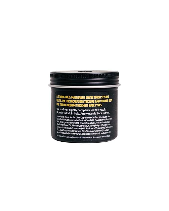 • Natural Styling Clay: Naturally and sustainably sourced blend of clays, waxes, and oils used in Matte Paste work with and for your hair to keep it healthy from roots to ends.