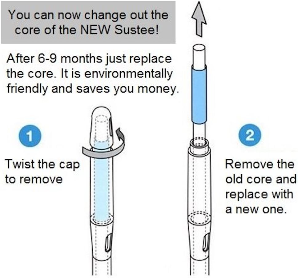 • Set includes two refillable sustee watering sticks (green) - Moisture meter for house plants that has refillable replacement core - Each stick will last for approximately 6-9 months