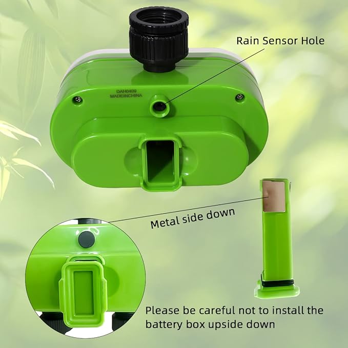 • POWERED BY LONG-lasting AA batteries (not included), this water-saving timer maintains programs for months, featuring low-battery alerts for timely replacements. Can be attached to 3/4''(19mm) or 1''(25mm) tap or faucet, Seller support will be glad to help you if you have difficult to setup programmes.