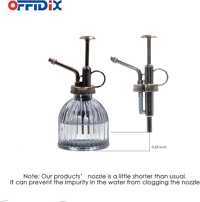 • Material: The top pump is made of plastic which prevent rust, the pneumatic nozzle design of the plant atomizer creates a fine spray effect. And the spray bottle is made of thickened glass, sturdy and durable.
