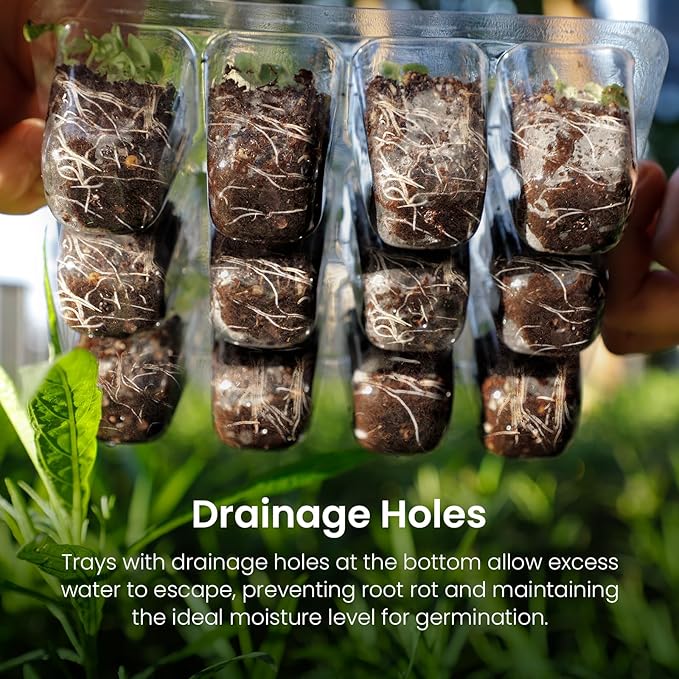 • 【Drainage System to Prevent Overwatering】Each cell measures 1.5x1.5x2IN (WxDxH) and features drainage holes at the bottom to ensure proper water flow, preventing root rot and overwatering. This helps your plants get balanced moisture and healthy root development, allowing them to thrive.