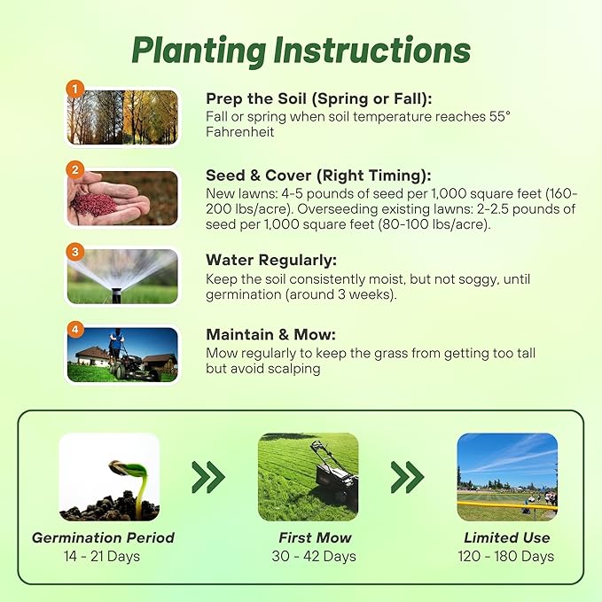• ENHANCED WITH OPTIGROWTH COATING: Our exclusive OptiGrowth coating on these seeds ensures better soil contact, moisture retention, and overall plant health, leading to improved germination and long-term viability. Ideal for new lawns or overseeding existing ones for a lush green finish.