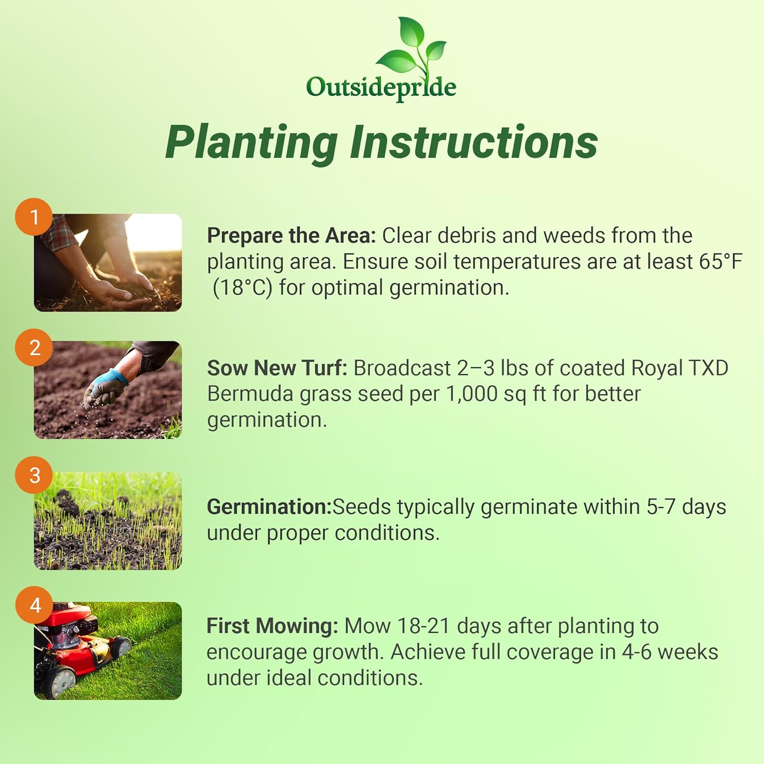 Outsidepride Royal TXD Bermuda Grass Seed Blend - 1 lb. Warm Season, Fast Growing Turf Grass Seeds: Heat & Drought Tolerant, Ideal for Home Lawns & Sports Fields, Dense & Lush Green Coverage
