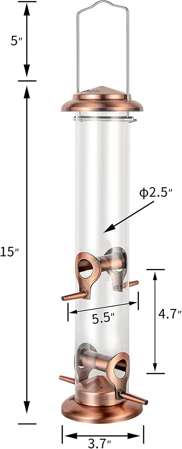 • 【Coppper Finshing, Great for all the year round feeding】Wear and Worn, Never Rust. All Metal top, base, feeding ports, perches, copper power-coat, rust resistant, robust construction to sustain all weather days. It features vintage copper outlook, traditional design inviting more feather birds to your garden, add more liveness to your garden life.