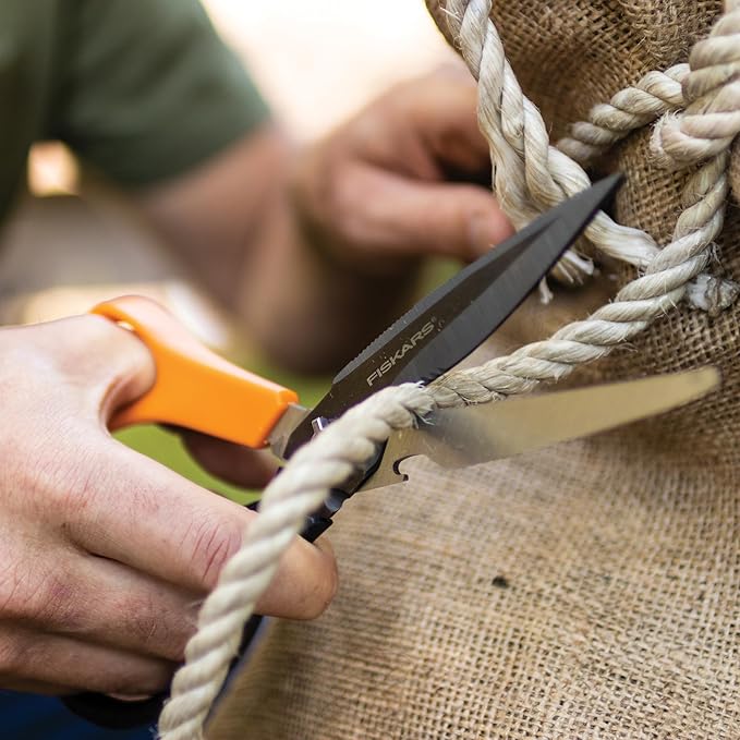 • LONG-LASTING AND RELIABLE: Trim Scissors with stainless steel blades stay sharp through heavy use and provide excellent durability for lasting value; Built-in sheath sharpener keeps Fiskars garden shears sharp between uses