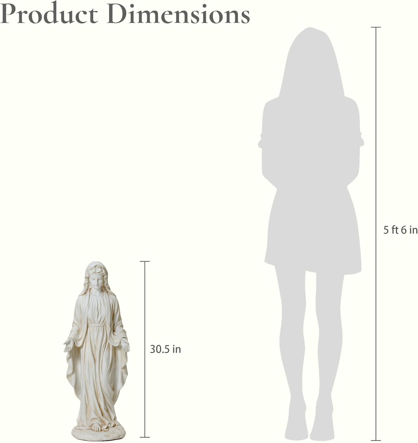 LuxenHome Virgin Mary Statue Outdoor, 30'' Religious Garden Statue, Blessed Mother Outdoor Statue, Virgen De Guadalupe Statues, Large Outdoor Garden Statues, Sculptures Decorations Home Yard Patio