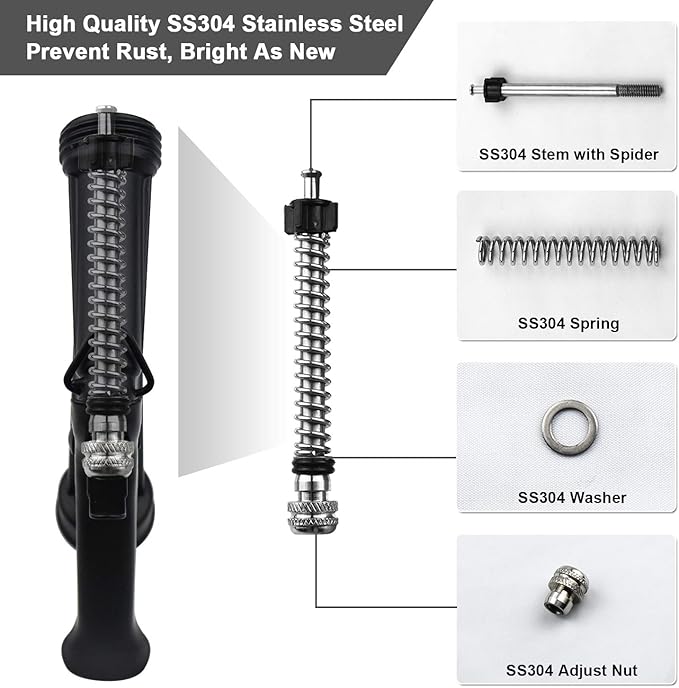 • High Quality Accessories—SS304 Stem with Spider and SS304 Adjust Nut, SS304 Spring prevent rust and keep bright. SS304 Washer obstruct springs and seals for increased service life.