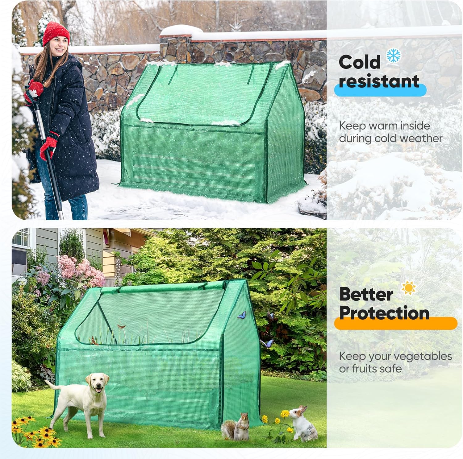 • 【1 Huge Zipper Window, Easy to Vent and Water】One zipper window on the side, completely vent in Spring and Summer, let more sunlight in, provide easy access to your plant and allows air flowing through on hot days, and easier to water them from the side.