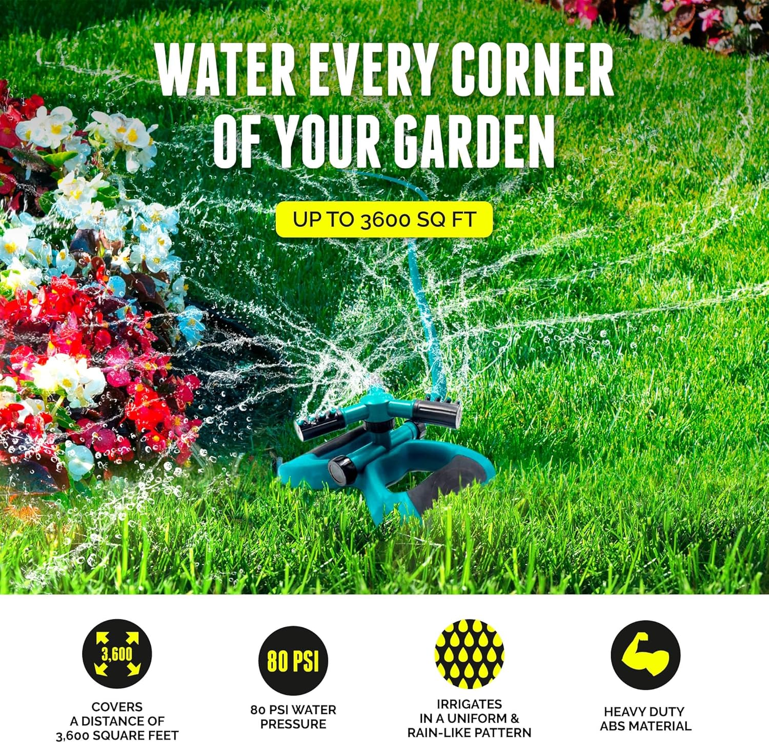 • [ Water Every Corner Of Your Garden ] This grass sprinkler features 3 adjustable rotating arms and 12 built-in different angle spray nozzles that let you control the watering range to cover every corner of your garden.
