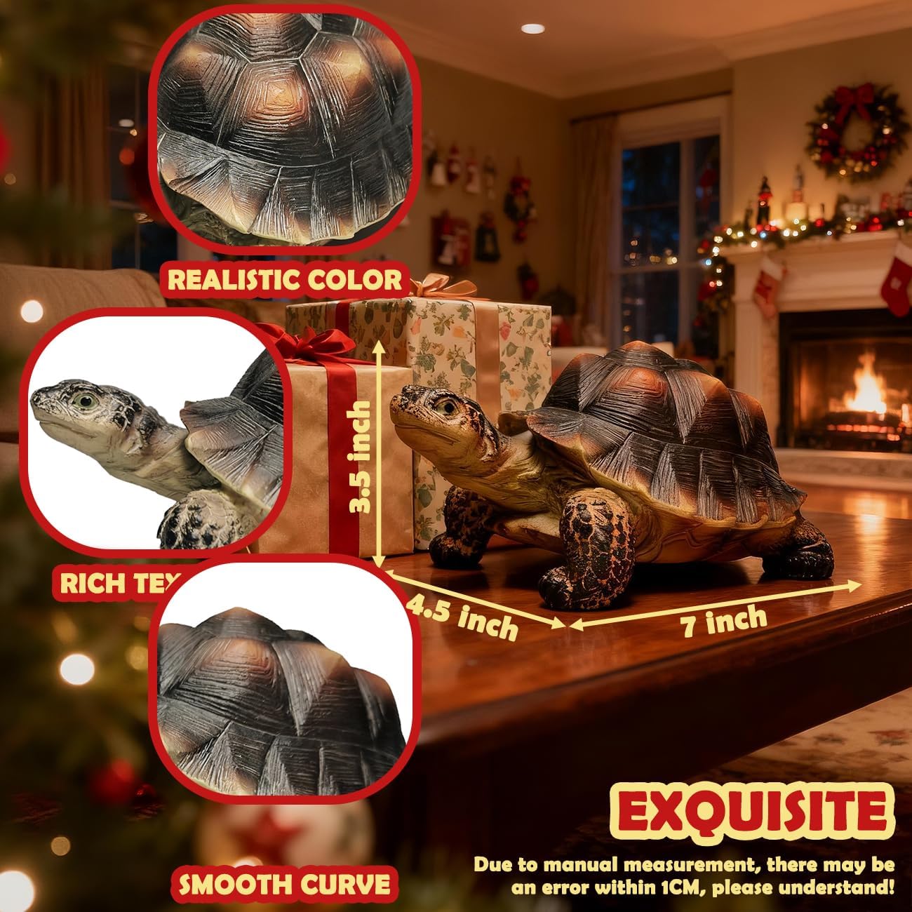 • Unique: Brown Turtle/Tortoise with realistic shell texture and granular skin.