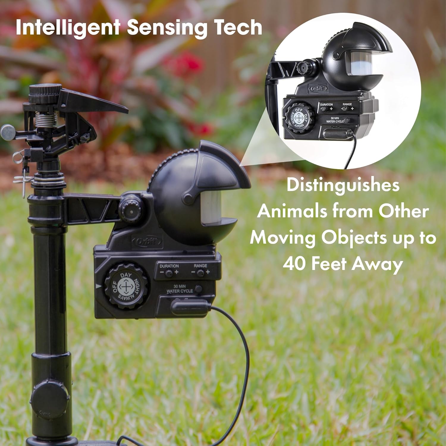 • The infrared sensor can detect objects up to 40 feet away providing plenty of coverage for your yard and garden. The range is also adjustable if you want to be more precise with the area that you are protecting. The tripod height can also be adjusted based on the size of your pests.