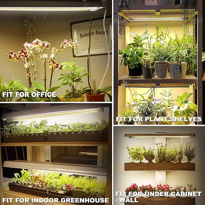 • Easy and Flexible Installation -The grow light bar pack comes with screws and a double-sided tape (pls cut into 2 pieces when applied). Compact design fits for various fixtures and surfaces. The power cord is 78 inches long for easy using in office,indoor,plant shelf,greenhouse etc