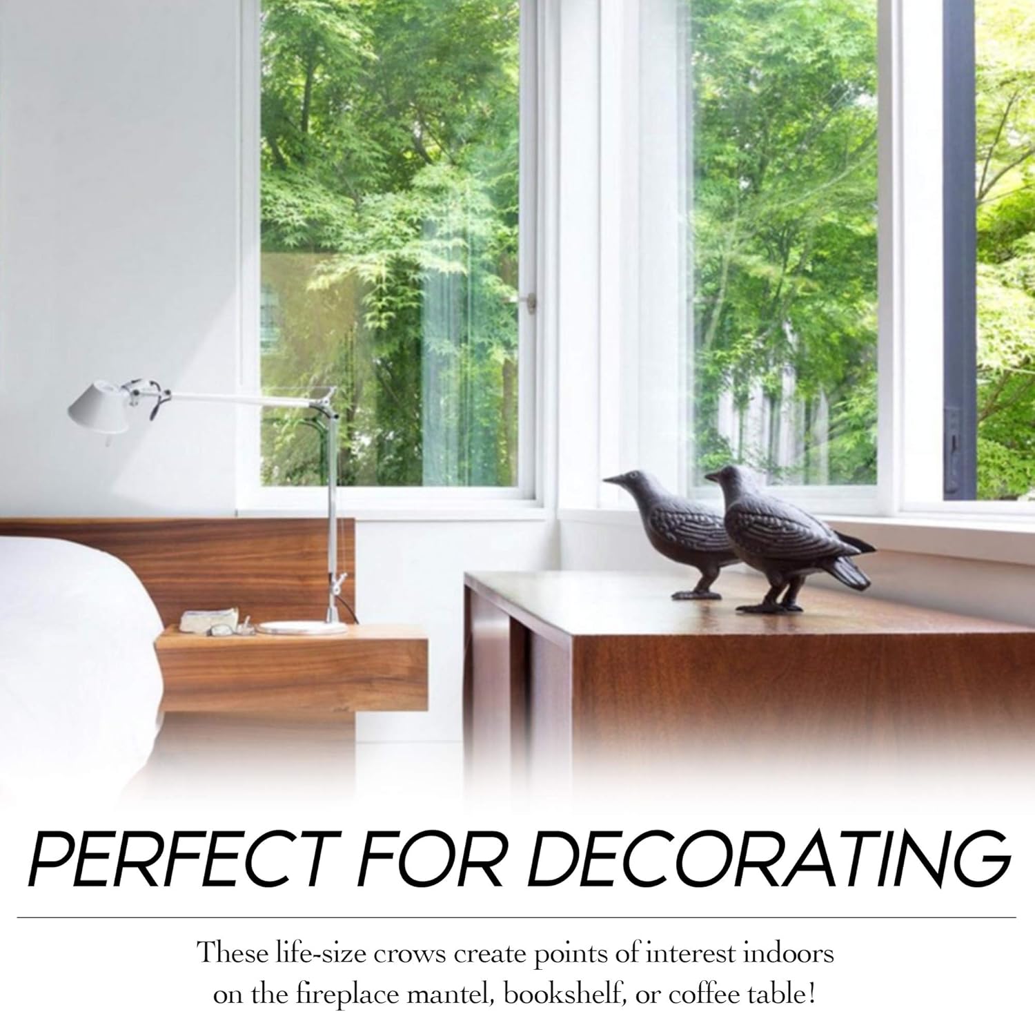 • Life Size Statue – These crow garden statues add interest where you place them: indoors on the fireplace mantel, bookshelf, or coffee table; these bird figurines are also perfect outdoors statues as well, in the garden or on the deck railing. Pick you favourite spot to display this delightful piece of crwo decor.