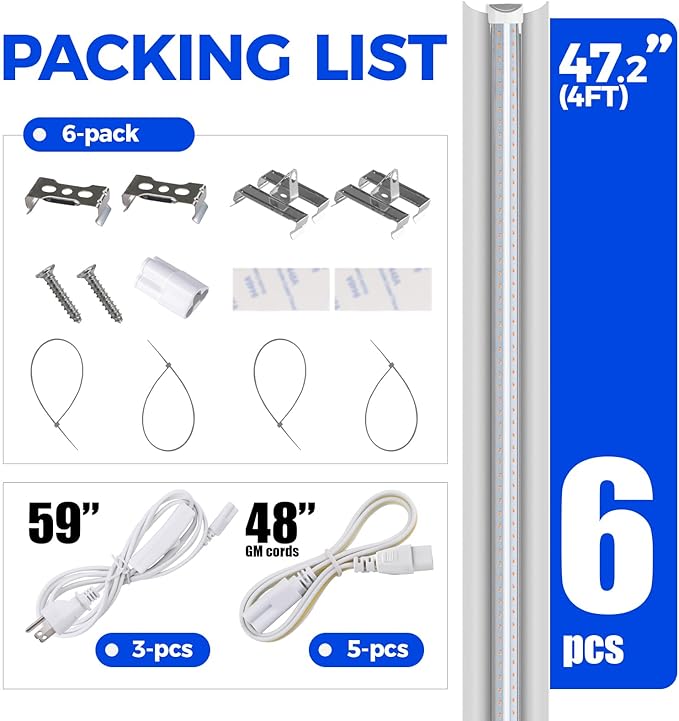 • Easy Installation: With included tape, clips and cable ties, you could install the lights by yourself in minutes. You could link up to 6 led grow light strips in a series