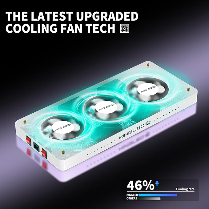 • Efficient Heat Dissipation: The aluminum heat sink and metal construction ensure excellent heat dissipation, keeping the temperature within optimal levels (50°f to 60°f); This cooling system prevents overheating, allowing the light to work efficiently without harming plants; Having the high-speed mute fans, the light remains quiet and stable, increasing its lifespan