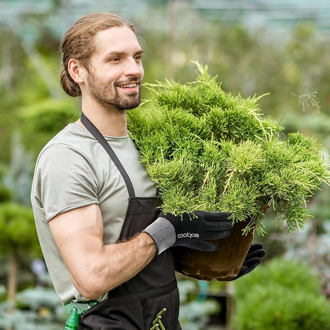 • RUBBER COATED GLOVES - Superior durable rubber palm to offer extra protection. Non-slip grip with gardening tools in dry and wet conditions. Soft micro foamed latex coating reduces fatigue for long day work. Black to hide dirt and extend service life. Strong enough for long lasting. Hose off easily. Machine washable for long time use.
