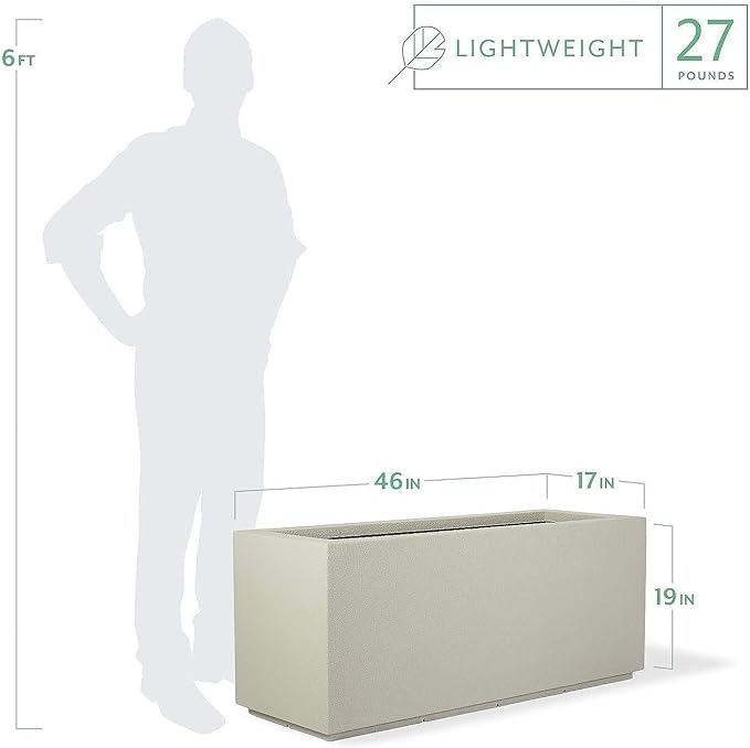PolyStone Milan Tall Modern Outdoor/Indoor Rectangular Trough Planter, 46" L X 17" W X 19" H, Lightweight, Heavy Duty, Weather Resistant, Polymer Finish, Commercial and Residential (Greige)