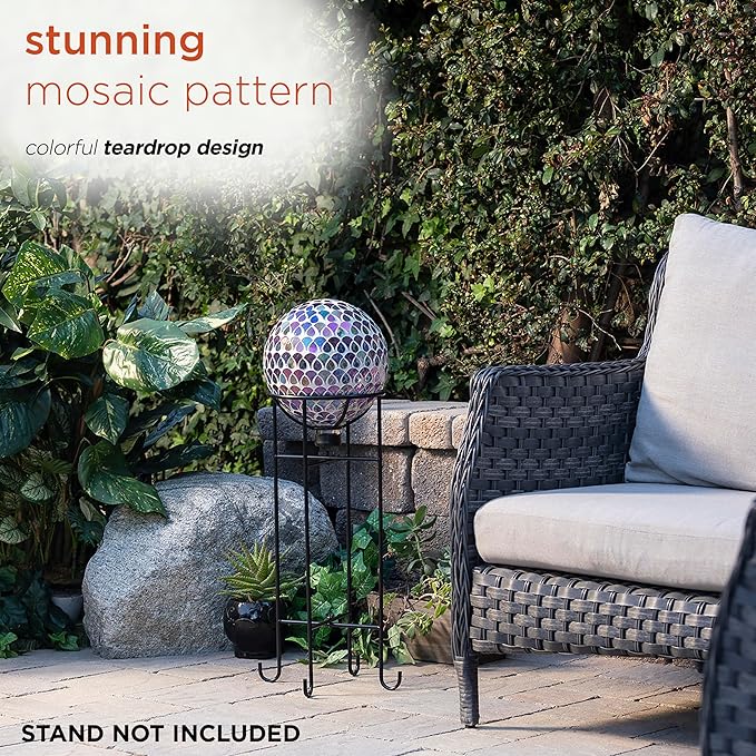 • OUTDOOR GARDEN DECOR: Gazing globe is made from multi colored iridescent glass pieces, and provides a unique and decorative addition to your home's interior or exterior decor with its mosaic design