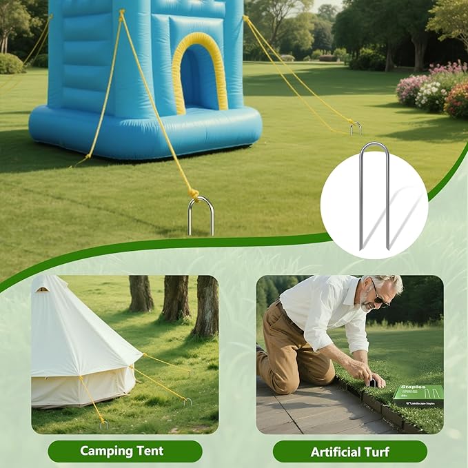 • GALVANIZED U LAWN STAKES - Garden Staples can be used to hold down your gardening fabric, garden mat, artificial grass turf, weed barriers, garden edging, gardening, raised bed, tomato cages,landscape fabric or plastic to keep weeds away from plants.