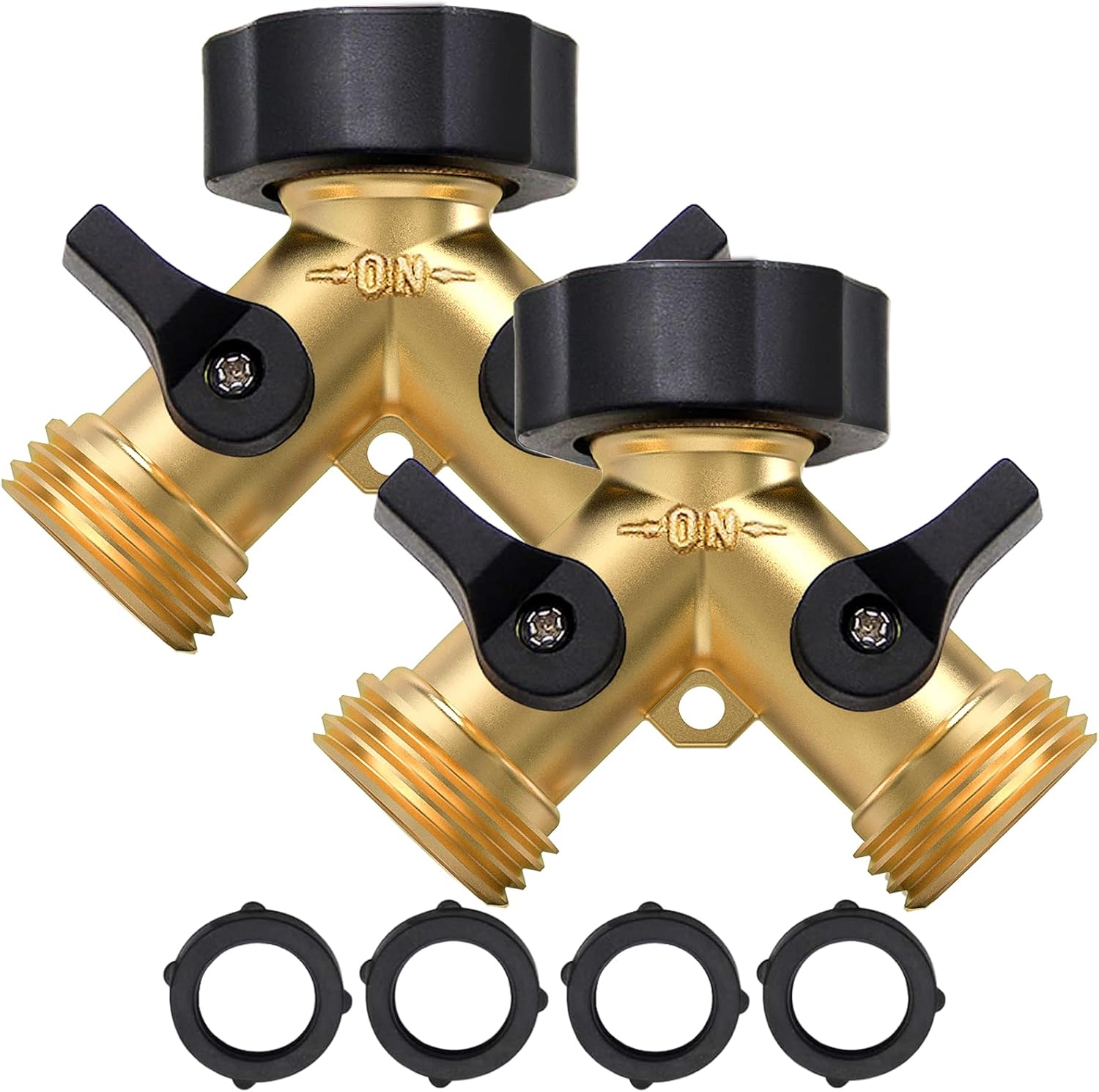 • 2 Pack 2 Way Hose Splitter: Converts a single water outlet into 2 ways, very convenient for you to control the work in different places at the same time. 2 x 2 way hose splitter, 4 x O-rings.