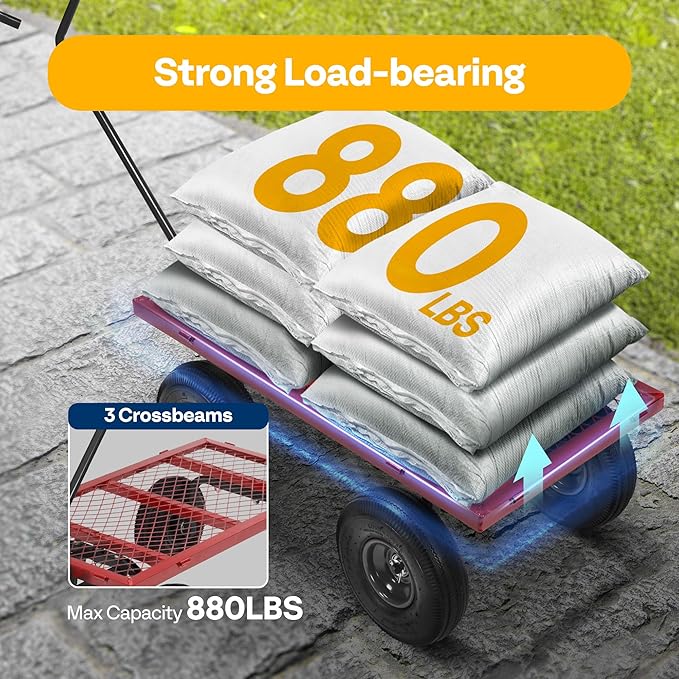 • FLEXIBLE HANDLES - The handles have a 180° turn design, so you can haul the cart in any direction freely and conveniently as you need; Its ergonomic design is comfortable for you to pull goods in an elegant way; It works well to turn your tiresome transports into one-time trips, showing excellent maneuverability even fully loaded