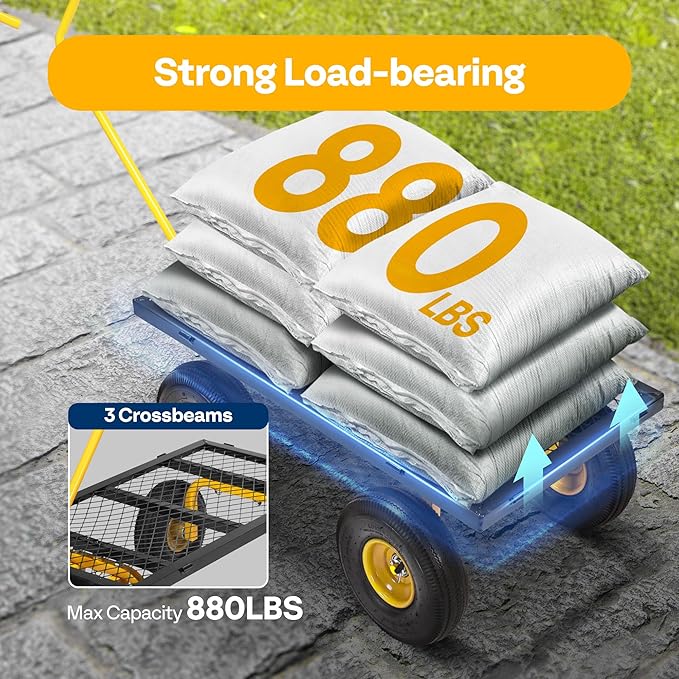 • POWERFUL LOAD AND LARGE CAPACITY - VIVOHOME's multi-functional garden cart has meticulous workmanship and strong design sense; Its maximum load can reach 880 lbs., which is more than twice that of competitors; there's nothing you cannot pull away with this practical and convenient cart (to prolong its life, long-term heavy loading is not recommended)