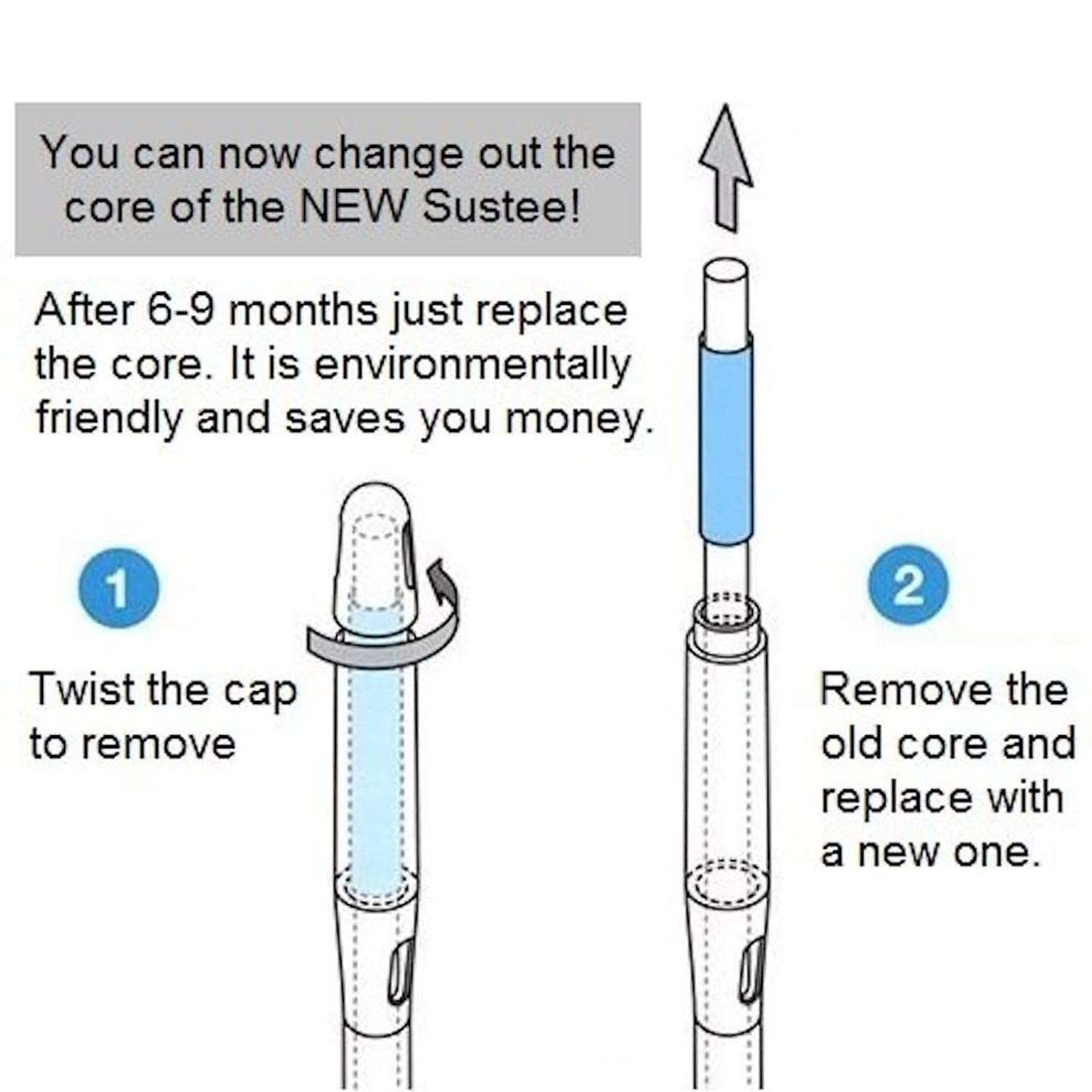 • Has refillable core; allows for replacement cores to be inserted - Each stick will last for approximately 6-9 months