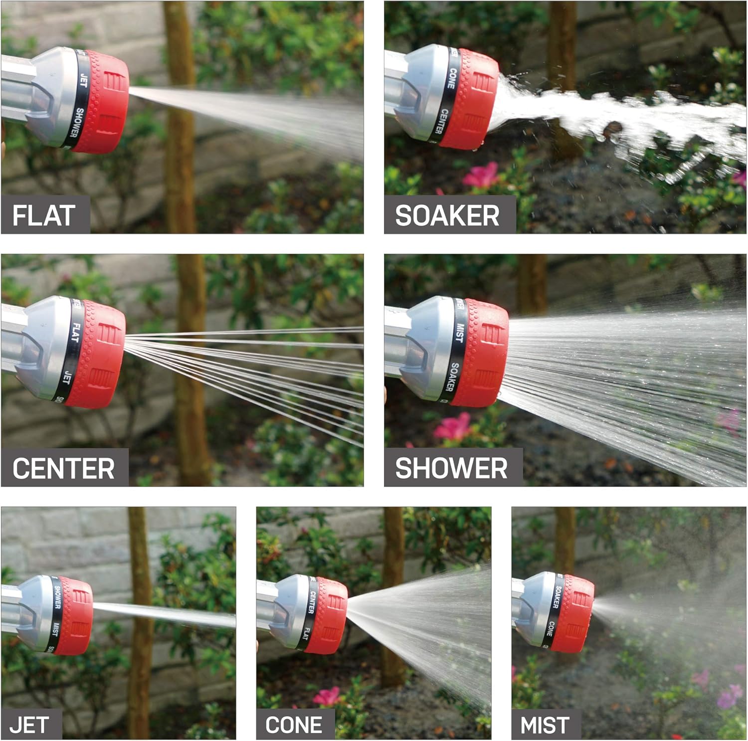 Eden 94805 Metal Thumb Control Heavy Duty Garden Hose Nozzle, High Pressure Water Sprayer W/ 7 Adjustable Patterns, W/Quick Connect Set for Plants, Lawn, Garden