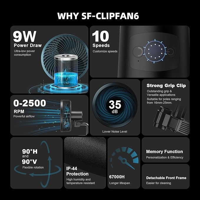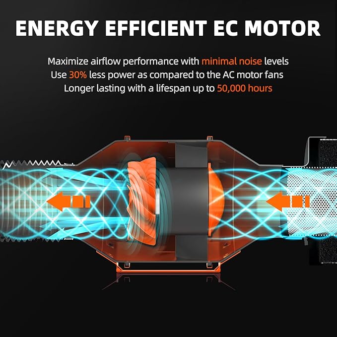 • 【POWERFUL VENTILATION SYSTEM】: Quiet and powerful 4” Inline fan and RC412 Australian carbon filter and flex aluminum ducting combo; very easy to install and use; gives strong airflow and proper air circulation. Clip fan delivers powerful airflow ranging from 0 to 2500 RPM, quickly circulation cooling. Customizable 7 speeds for all plant growth stages.