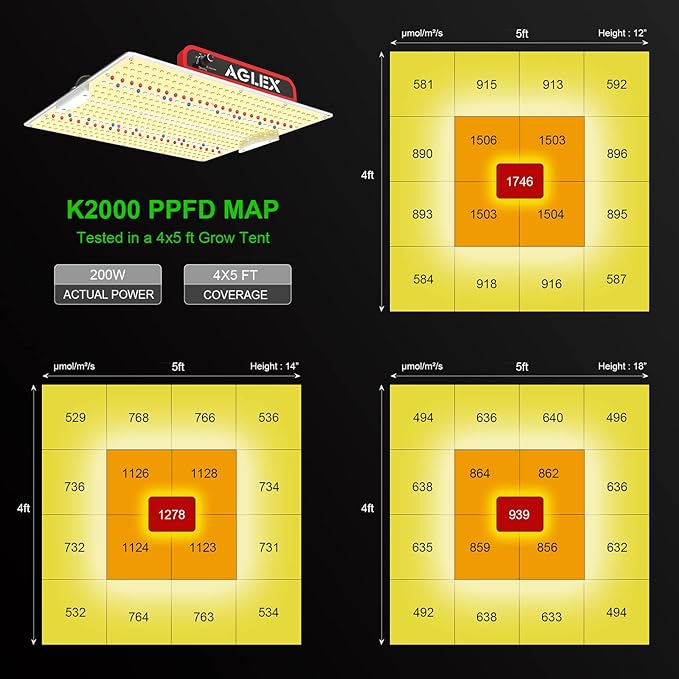 • High PPFD Grow Light for Higher Yields - Built with 528 high-efficiency SMD Leds, this grow light delivers up to 1746 μmol/㎡/s at 4x5 ft coverage, providing strong, even light that boosts plant growth and harvest size.