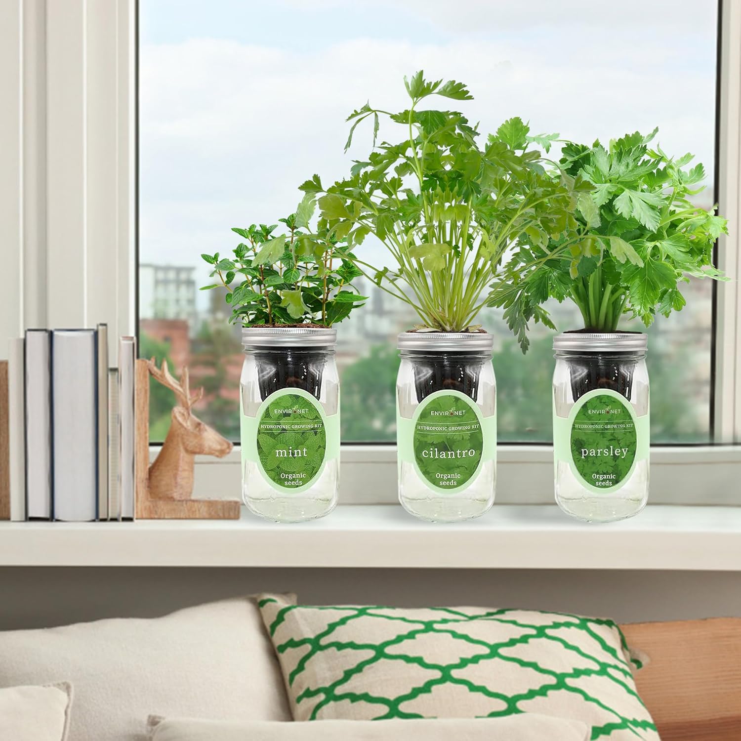 Hydroponic Herb Growing Kit Set, Self-Watering Mason Jar Herb Garden Starter Kit Indoor, Windowsill Herbs Garden, Grow Your Own Herbs from Organic Seeds (Mint, Cilantro and Parsley)