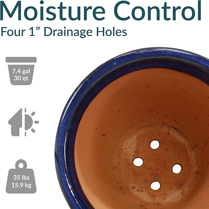 • DESIGNED FOR BEAUTY AND DURABILITY: This outdoor plant pot is crafted with a rich, hand-painted glazed finish that is kiln-fired for a classic, shining appearance. Subtle variations in color highlight the artisanal glazing process, making each piece truly unique. The durable ceramic construction offers natural UV and frost resistance, while its heavy weight adds stability to outdoor arrangements, keeping the planter upright in windy conditions.
