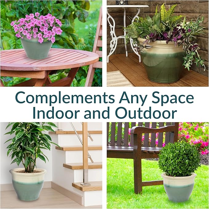 • VERSATILE PLACEMENT: Use this round garden planter on the patio, deck, or porch to add flowers to outdoor spaces, or set the planter in the sunroom, living room, or dining room to bring life to indoor spaces. If using it indoors, place a saucer (not included) beneath the flowerpot to prevent water and soil from leaking on the floor. The drainage in the bottom of the pot provides optimal air circulation and prevent water from pooling.