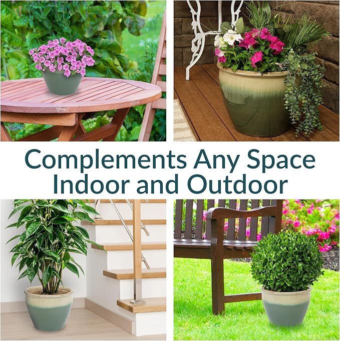 • VERSATILE PLACEMENT: Use this round garden planter on the patio, deck, or porch to add flowers to outdoor spaces, or set the planter in the sunroom, living room, or dining room to bring life to indoor spaces. If using it indoors, place a saucer (not included) beneath the flowerpot to prevent water and soil from leaking on the floor. The drainage in the bottom of the pot provides optimal air circulation and prevent water from pooling.
