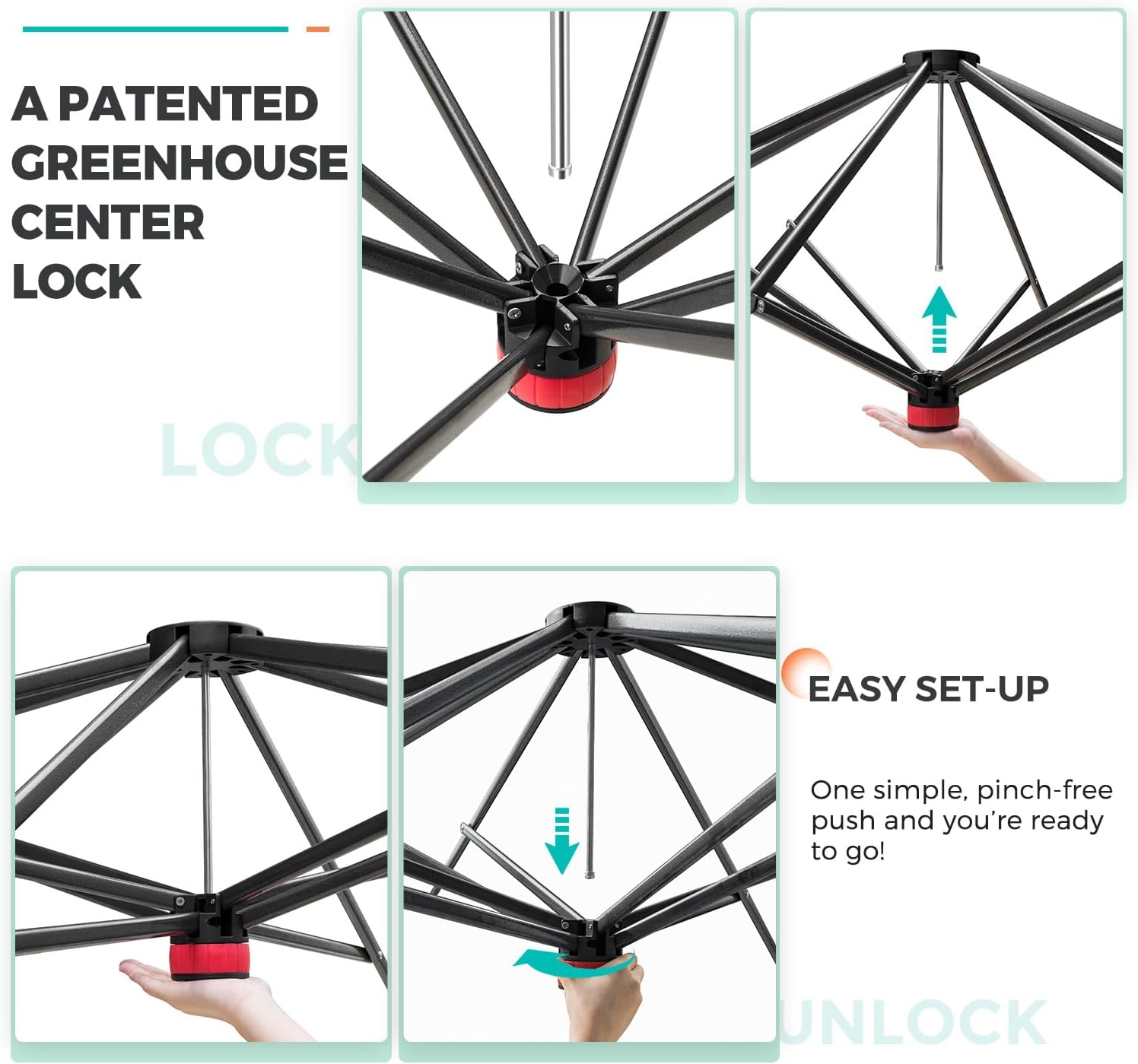 • EASY SETUP: This pop up greenhouse with patented center lock technology supports one person setup in seconds. The pre-assembled frame and innovative Peak Push locking system delivers a quick setup. No tools required. Whether you're a seasoned gardener or just starting out, the EAGLE PEAK pop-up greenhouse for outdoors saves you time and hassle