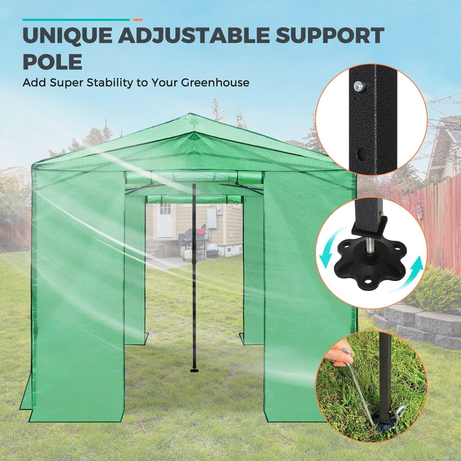 • BUILT FOR ALL SEASONS: The heavy-duty steel frame provides durability and stability, giving you peace of mind even in challenging outdoor conditions. Comes with an adjustable winter support pole to add stability to the greenhouse top cover, reinforced with wind ropes and stakes, it is the ultimate solution for long lasting use even in tough weather